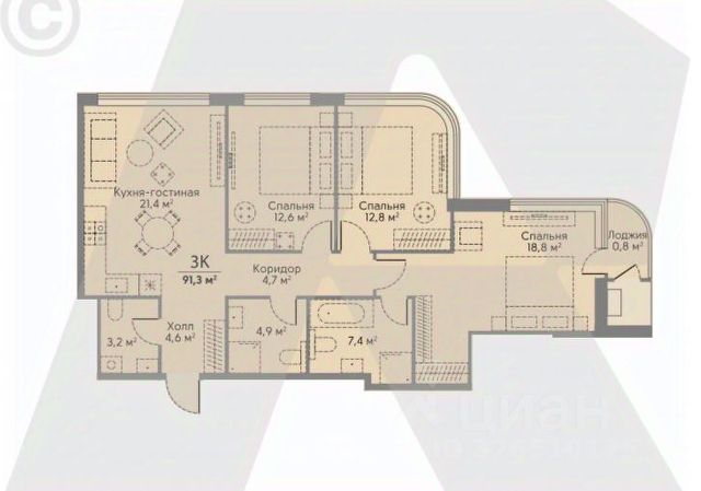 Панорамные окна, потолки 3,1 м. Квартира сдаётся без отделки. Выдача ключей 3 кв.2026 года.