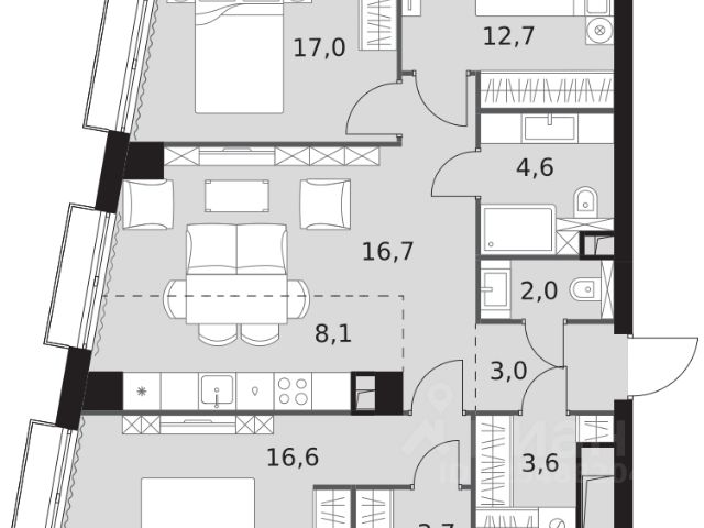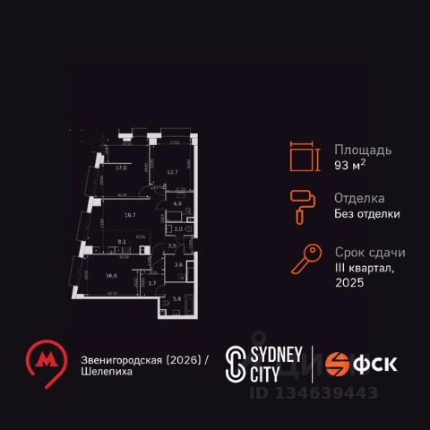 Прямая продажа от застройщика! Жилой Комплекс премиум-класса. Продаётся 4-к квартира номер 581 общей площадью 93.8 кв.м. на 31-м этаже 43 этажного здания. Без отделки. Цена с учётом скидки. Особенности квартиры: - Мастер-зона с санузлом и гардеробной. Всё для вашего комфорта и удобства, включая личный санузел и гардероб. - Угловая планировка - больше пространства для ваших идей. - Увеличенная ширина окна/окон - больше света и визуального простора. - Увеличенное количество окон - дополнительное освещение и свежий воздух. - Окна в пол - панорамный вид и максимальное количество света. - Угловое остекление - свет и воздушность в каждой комнате. - Гостевой санузел - комфорт и удобство для ваших гостей. - Душ помимо ванной - дополнительное удобство для вашей семьи. - Евроформат - просторное и удобное жилье с отличной планировкой. - Место для игры/занятия спортом - идеальное пространство для активных детей. - Можно оборудовать рабочее место - комфорт для работы и учёбы. - Просторная мягкая зона - комфорт и уют для отдыха всей семьи. - Линейная кухня - функциональность и практичность в одном решении. - Возможность добавить спальное место - дополнительный комфорт для гостей. - Гардеробная - удобство для хранения и организации вещей. - Ниша под шкаф - компактное и удобное место для вещей. Информация о комплексе: Премиум-класс прямо на берегу Москвы-реки, с прямым выходом на набережную и потрясающими панорамными видами! На Шелепихинской набережной, расположен причал для речных трамваев. Вам станет доступна единственная столичная транспортная артерия, на которой никогда нет пробок: 20 минут до Москва-Сити, да еще и с вдохновляющими видами по пути. Входные группы домов - это индивидуальные дизайн-проекты, посвященные трем главным местам в жизни Лермонтова: Тарханам, Петербургу и Кавказу, которые объединяют сочетание эстетики и комфорта. Бурная жизнь соседей больше не сможет нарушить ваш покой, а к вам никто не постучит, если вы захотите прибавить громкость в любимом музыкальном треке или Ваши дети захотят устроить ночную пробежку! Живите только по своим правилам. В каждой квартире подключен базовый пакет Умная квартира забудьте о беспокойстве о протечке; настройте свои сценарии управления техникой и электричеством; общайтесь с Умной квартирой голосом; Можете легко расширить базовый пакет и подключить дополнительные опции и устройства, чтобы из любой точки мира управляй работой бытовых приборов и систем, например: включайте разогрев ужина; регулируйте яркость яркость света; регулируйте громкость музыки; настраивайте работу теплых полов; Транспортная доступность: В 50 м до новой станции метро "Звенигородская". Вторая улица от ЦАО и соседство с Москва-Сити. Все виды общественного транспорта, в том числе речные трамвайчики, в пешей доступности Внутренняя инфраструктура: Основная артерия жизни квартала - центральный бульвар. Вы с радостью обнаружите, что путь до престижных школ и вузов, развлечений и магазинов сжался до