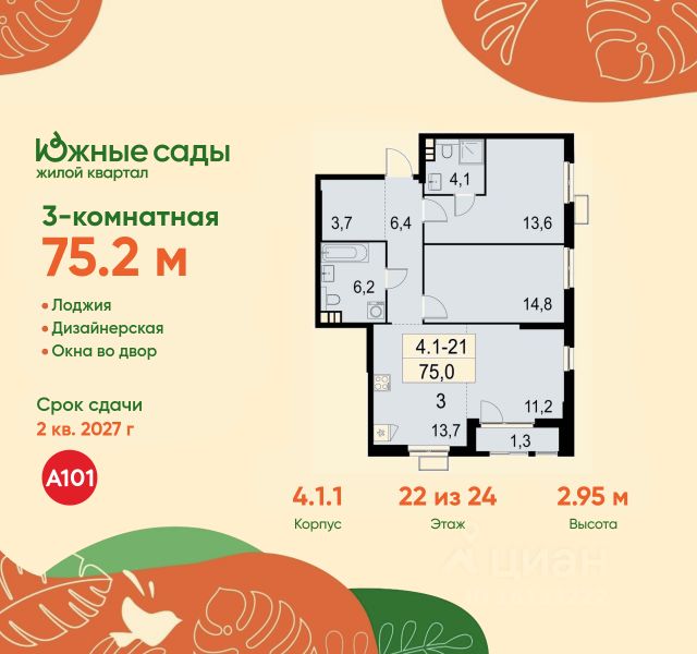 Продается четырехкомнатная квартира 668 в новостройке ЖК "Южные Сады" по адресу Москва, ЮЗАО, Южное Бутово, Бартеневская улица, 18к2, Москва. Общая площадь квартиры - 166.20 кв. м., этаж 23 из 23, секция 3. Тип проекта, по которому построен дом - монолит, компания-застройщик - ООО "А101". Стоимость квартиры - 48955872 Р. ПРЕДЛОЖЕНИЯ ОТ ЗАСТРОЙЩИКА В ФЕВРАЛЕ 2026: Скидки до 10% на все квартиры. Только в офисах продаж до 28 февраля. Ипотека от 13,9 % для всех! На весь срок. "Семейная ипотека" вернулась. Ставка от 3,5 % на весь срок! Без удорожания! Выгодное ипотечное комбо: Ипотека от 2200 р./мес. и от 6 % после рождения ребёнка! Ипотека для всех "Держи пять!" - ставка 5 % на 2 года! *более подробную информацию по скидкам и акциям уточняйте в отделе продаж "Южные сады" на юго-западе Москвы - это жилой комплекс монолитных домов с авторской архитектурой, холлами в средиземноморском стиле, колясочными, современными лифтами, паркингом и кладовыми. Южную атмосферу в районе создадут: - перголы с вьющимися растениями, живые изгороди, садовые дорожки - цветущие, плодовые и вечнозелёные растения - стилизация под средиземноморский ландшафт - амфитеатр и игровой кластер со скалодромом. За безопасность "отвечают" закрытые дворы без машин с доступом только для жителей дома, видеонаблюдение, вход по магнитным ключам. Рядом ландшафтный парк "Южное Бутово", Черневские пруды: театры, танцплощадка, крытые беседки, детские и спортивные комплексы, пикниковые зоны, пешеходные дорожки, деревянные настилы. На первых этажах домов: супермаркеты, кафе, банки, фитнес, пекарни. В пешей доступности - торговые центры, гипермаркет, ФОК, действующая инфраструктура. Для семей с детьми - кружки, секции, детские клубы,центры развития, языковые школы. Преимущества "Южных садов": - атмосферное "средиземноморское" благоустройство - 3 станции метро: "Бунинская аллея", "Улица Горчакова", "Новомосковская" - в пределах 1,6 км - в окружении - развитая инфраструктура обжитой локации - в пешей доступности - Бутовский лесопарк
