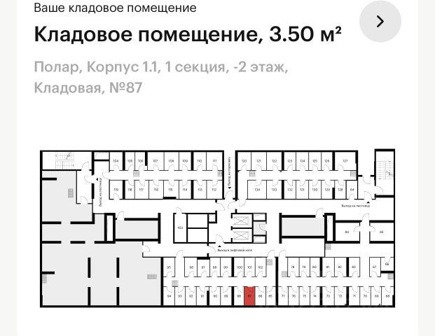 Продается кладовка 3,5 кв.м. в ЖК ПОЛАР секция 1.1 на -2 этаже Сдача октябрь 2025