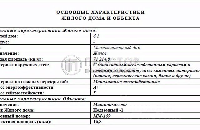 Продается машиноместо в ЖК "Бунинские кварталы " (корпус 6.5) Минус ПЕРВЫЙ этаж — самый комфортный и тёплый уровень парковки Бизнес класса! Идеальный вариант для тех, кто ценит удобство, безопасность и комфорт. Сухое, тёплое и максимально защищённое машиноместо Минус 1 этаж Основные характеристики Жилого дома по ЖК Бунинские кварталы: Жилой дом: 6 Корпус: -6.5 Вид: Многоквартирный дом Назначение: Жилое Общая площадь (кв.м): 54 578,0 Материал наружных стен: С монолитным железобетонным каркасом и стенами из мелкоштучных каменных материалов (кирпич, керамические камни, блоки и другие) Материал поэтажных перекрытий: Монолитные железобетонные Класс энергоэффективности A+ Класс сейсмостойкости: 5 и менее Основные характеристики Объекта: Назначение: Машино-место Этаж Жилого дома: подземный Условный номер: ММ-120 Проектная площадь (кв.м): 14,3