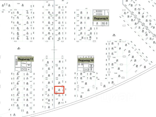 Машиноместо 16,5м ЖК Каскад. -3 этаж. Рядом с подъездом 9,10,11 Место 579.