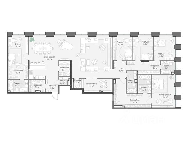 - Все необходимое для комфортного проживания: две гардеробные, современная прачечная, огромный холл.
