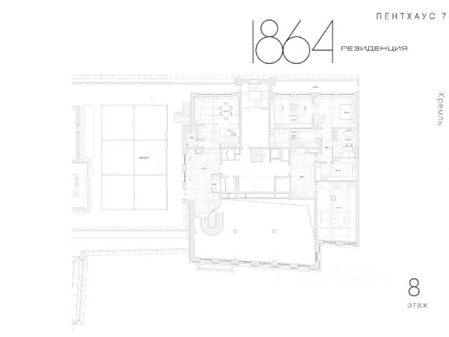 Продается доля 9661/10000 в жилом помещении (квартира) общей площадью 321,1 кв. м, расположенном на 4 этаже 5-этажного кирпичного жилого дома 1910 года постройки.