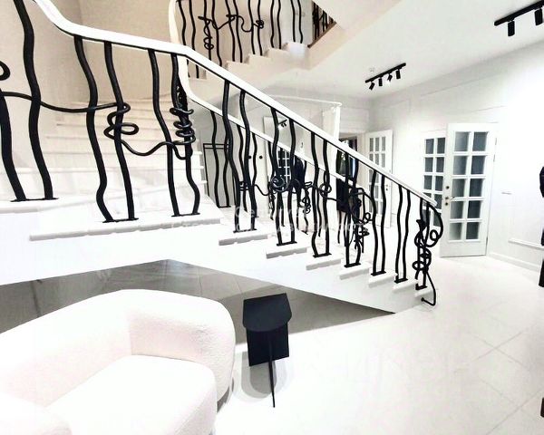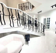 На второй этаж квартиры из гостиной ведет лестница с панельным поясом из махагона, декорированная фризом с золотым орнаментом.