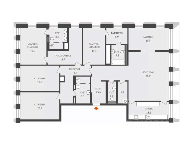 155101 ЖК Садовые кварталы Роскошный двухуровневый пентхаус в ЖК "Садовые Кварталы" общей площадью 342,4 кв.м. На первом уровне располагается просторная кухня-гостиная с мягкой зоной и дровяным камином, гостевой санузел, кладовка и мастер-спальня с собственной гардеробной и ванной комнатой. На втором уровне находятся три детские спальни, каждая со своей ванной комнатой, гостевая спальня, игровая комната и постирочная, оборудованная техникой Miele. Кухня Poliform оборудована премиальной бытовой техникой Zug, Libherr. Сантехника AntonioLupi, смесители Waterworks. В отделке использованы только высококлассные натуральные отделочные материалы - мрамор, кварц, паркет выполнен из американского ореха (Ebony), настенные деревянные панели - из дуба. Использованы уникальные технологии подсветки. В квартире установлена фильтрация воды. Квартира оснащена индивидуальной приточно-вытяжной вентиляцией и системой "умный дом". Высота потолков до 3,62 метров. В стоимость пентхауса входит 3 машиноместа. Ждем Вас на показе.