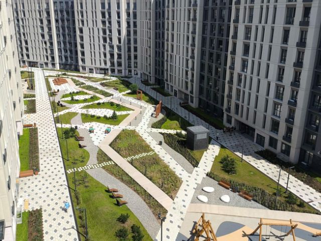 Комплекс, подземный паркинг и его территория находятся под круглосуточной охраной, территория благоустроена и озеленена в современном ландшафтном дизайне, имеются детские и спортивные площадки, прогулочные дорожки, теннисный корт, салон красоты, фитнесс-студия, СПА, химчистка, кафе, продуктовый мини-маркет, гостевые парковочные места перед подъездами.