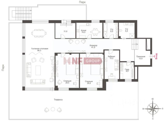 Планировкой квартиры предусмотрено: кухня с выделенной обеденной зоной, гостиная с современным камином, 4 спальные комнаты, две гардеробные, 4 санузла, включая гостевой. Отдельного внимания заслуживает просторная терраса, где оборудована зона барбекю для встречи гостей и совместного отдыха. В настоящее время в квартире идут ремонтные работы, - отличная возможность обустроить пространство в соответствии с Вашими идеями