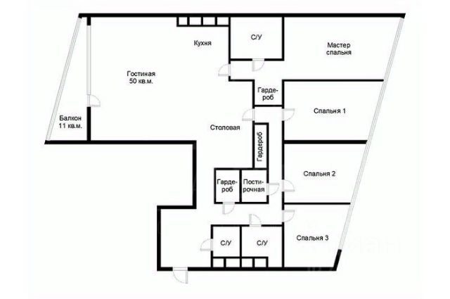 В квартире: 3 полноценных спальни (включая мастер-спальню с гардеробной и с/у), кухня-гостиная с панорамой на Москву, зимний сад, кабинет, коридор с гардеробной комнатой, гостевой с/у, гостевая спальня (или комната няни) и постирочная. При каждой из двух больших детских спален есть отдельный с/у. Одна из спален 53,6 кв.м и легко зонируется для 2-х детей и остается игровая с рабочей зоной.