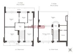 Спальни: гостевая (15,8) с гостевым санузлом (4,3), 2 детские (23,3 и 23,8), каждая со своей ванной комнатой (4,5 и 5,5), мастер-блок: спальня с камином (26,4), кабинет (18,2), гардеробная (9,1) и ванная комната (13,2).