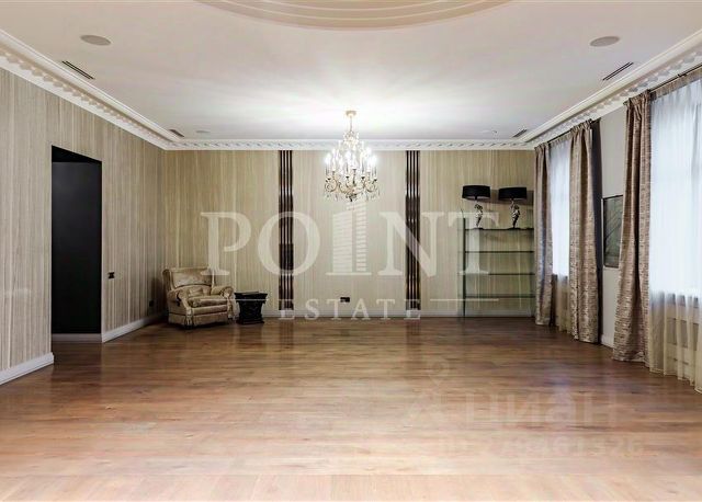 Квартира с тремя спальнями общей площадью 280 м² в клубном комплексе делюкс-класса "Парк Палас" на "Золотой Миле" в Хамовниках. Квартира с новой отделкой расположена на 3-м этаже. В оформлении использованы натуральные материалы — мрамор от компании "КАМ", колонна из кварцита от Aisberg, гранитные подоконники Magma, на полу тонированный дуб. Остальные материалы: алебастр, латунь, эксклюзивный шпон, натуральные камни, перламутр, хрусталь, авторское стекло, шелк, бархат.