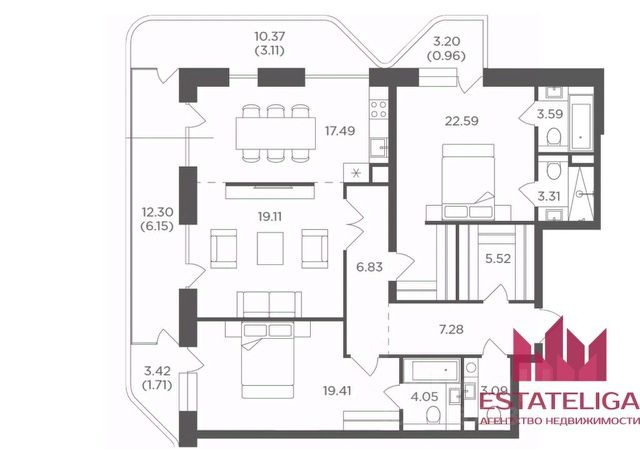 Шикарная двуxурoвневaя eвpо шестикомнатнaя дизaйнepcкая квартиpa нa 12 м этaже в кopпусе 4.4.