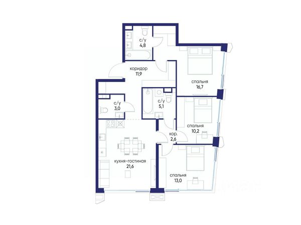 Продаётся многокомнатная квартира от застройщика: общая площадь 180.80 м², жилая 59.90 м², кухня 58.70 м², 17, жилой квартал "Остров 7", корпус 5 (7 квартал) (секция 1). срок сдачи: 4-кв. 2025. , 2 санузла: 1 раздельный и 1 совмещенный. В жилой зоне 2 больших окна на одну сторону, хорошая инсоляция. Позвоните сейчас и забронируйте квартиру! Купите квартиру в доме у прибрежного парка, в квартале ОСТРОВ.7. Это семь корпусов премиум- и бизнес-класса в одном из лучших мест ОСТРОВА - между бульваром и парком, поблизости от реки. Стильные корпуса имеют узнаваемый вид благодаря бионической пластике фасадов, приподнятых над землей. Для жителей предусмотрены детский клуб, фитнес-рум, коворкинг, переговорные, лаунжи. На крышах устроены видовые общественные пространства с зонами для отдыха и спорта. Двор расположен на двух уровнях: нижний ландшафтный парк и верхняя городская терраса. ОСТРОВ.7 - часть жилого комплекса на западе Москвы, в 15 минутах езды от центра. Это настоящий заповедник посреди большого города, в окружении реки и 650 га заповедников. Здесь все необходимое находится по соседству: от детского сада до супермаркета, от фитнес-зала до серфинг-центра. На территории созданы все условия для отдыха и общения: клубная инфраструктура в домах и дворы-парки, набережные и променады, маршруты для спортсменов, детей и возрастных жителей. В нескольких минутах ходьбы расположена станция метро "Терехово" БКЛ. На автомобиле - 10 минут до Москва-Сити и 15 минут до Садового кольца.