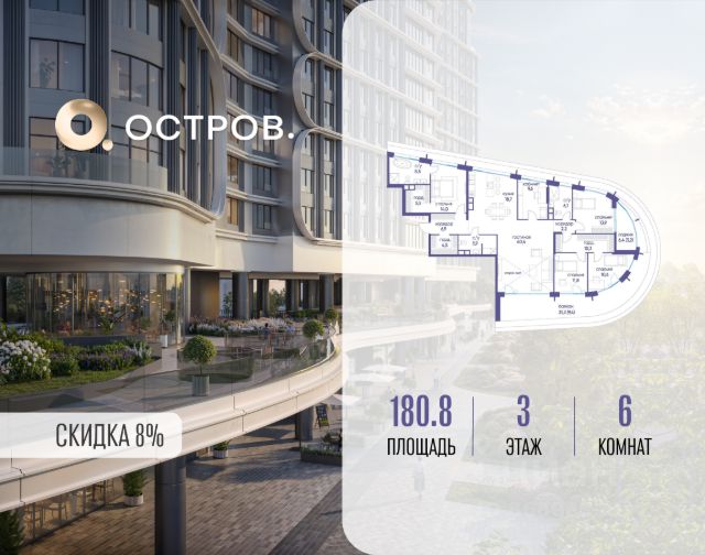 Скидка до 8% действует до 31.03.2026 г. при 100% оплате и не субсидированной ипотеке. Продаётся квартира от застройщика: общая площадь 215.10 м², жилая 76.30 м², кухня 52.00 м², 2-й этаж, жилой квартал "Остров 10", (секция 1). Срок сдачи: 2 квартал 2026 года. 4 санузла (2 раздельных и 2 совмещенных). В жилой зоне 2 больших окна на одну сторону, хорошая инсоляция. Позвоните сейчас и забронируйте квартиру! ОСТРОВ от Донстрой - жилой комплекс на западе Москвы, в Мневниковской пойме. Уникальное преимущество комплекса - в том, что он обособлен от города рекой и природным парком (650 га). Благодаря природному окружению эта территория имеет лучший экологический рейтинг в столице. Кварталы ОСТРОВА объединены ландшафтным дизайном в единое пространство - с набережными и Центральным бульваром. На ОСТРОВЕ любые объекты, необходимые для полноценной жизни и отдыха, находятся на расстоянии 15-минутной прогулки. Торговый центр и супермаркеты, кафе и рестораны, фитнес, салоны красоты, школы и детские сады. А также крупнейший в Москве спортивный кластер.