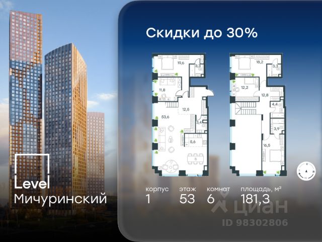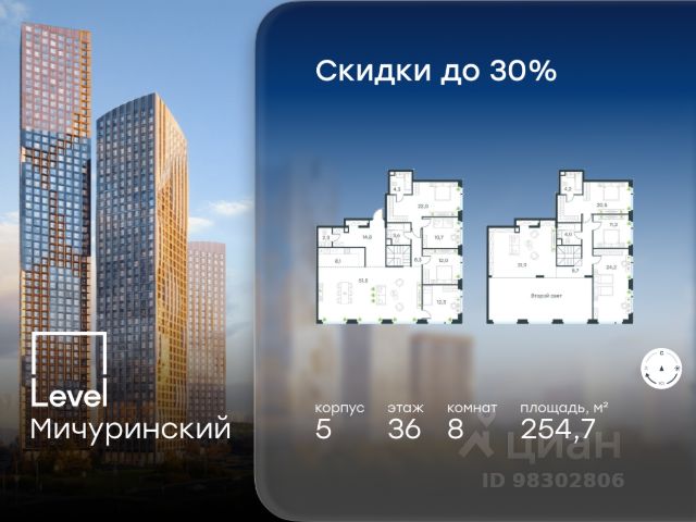 В жилом квартале, расположенном на границе с природным заказником "Долина реки Очаковки", продаётся многокомнатная квартира площадью 254.70 кв.м без отделки. Квартира расположена на 36 этаже 37-этажного корпуса 5 в жилом комплексе бизнес-класса Level Мичуринский (компания Level Group/Левел групп).