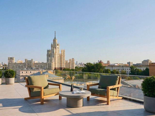 В пентхаусе обустроена просторная терраса размером 159,5 кв.м, с открытыми прямыми видами на исторические достопримечательности!