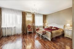 Дом клубного формата премиум класса - всего на 56 квартир, выполнен в стиле сталинского ампира, роскошный вестибюль с зоной отдыха на 1 этаже, консьерж-сервис, колясочная комната, охрана 24 часа, огороженная территория с ландшафтным дизайном, детская площадка с горкой и вращающимися на подиуме креслами, подсветка фасада, гостевой паркинг, профессиональная управляющая компания, лифты KONE опускаются в гараж без пересадок.