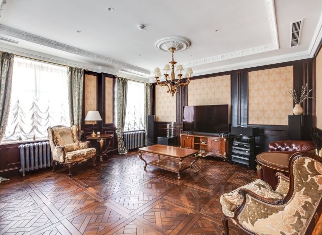 Лот: 50170. В продаже квартира с отделкой и видом на парк в элитном жилом комплексе Park Residence на Якиманке. Выполнена отделка в классическом стиле, на полу уложен паркет из ценных пород дерева, квартира частично меблирована. Из панорамных окон открывается красивый вид в сторону парка "Музеон" и во двор.