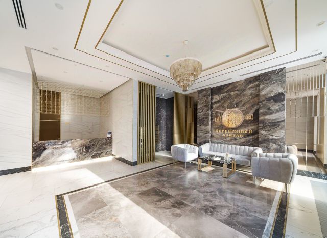 Входные группы в стиле ар-деко, потолки 4.7 м., мягкие зоны для гостей, санузлы и колясочные. собственная огороженная и охраняемая территория 7.7 Га, видеонаблюдение.