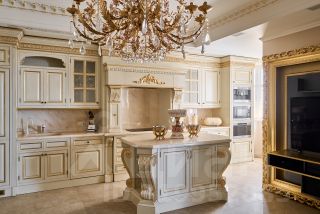 Люстры хрустальные, бра, выполнены мастерами в Италии и привезены конкретно под этот проект.