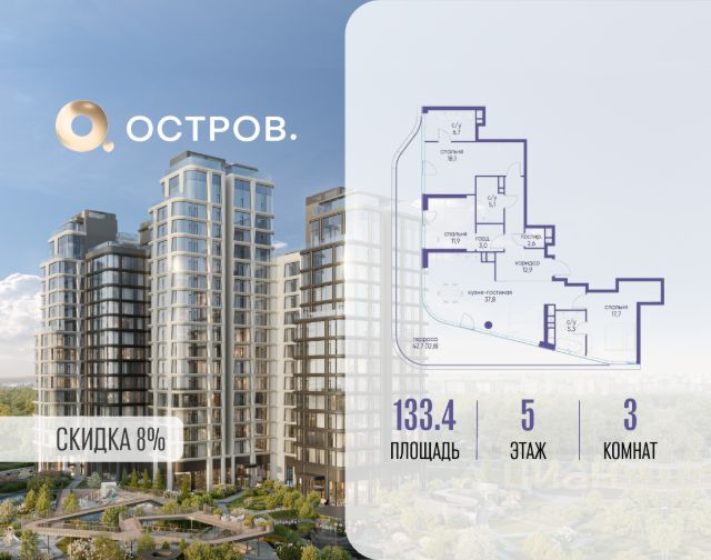 Скидка до 8% действует до 31.03.2026 г. при 100% оплате и не субсидированной ипотеке. Продаётся многокомнатная квартира от застройщика: общая площадь 318.10 м², жилая 99.80 м², кухня 75.30 м², 19, жилой квартал "Остров 7", корпус 4 (7 квартал) (секция 1). срок сдачи: 4-кв. 2025. , 4 санузла: 1 раздельный и 3 совмещенных. В жилой зоне 2 больших окна на одну сторону, хорошая инсоляция. Позвоните сейчас и забронируйте квартиру! Купите квартиру в доме у прибрежного парка, в квартале ОСТРОВ.7. Это семь корпусов премиум- и бизнес-класса в одном из лучших мест ОСТРОВА - между бульваром и парком, поблизости от реки. Стильные корпуса имеют узнаваемый вид благодаря бионической пластике фасадов, приподнятых над землей. Для жителей предусмотрены детский клуб, фитнес-рум, коворкинг, переговорные, лаунжи. На крышах устроены видовые общественные пространства с зонами для отдыха и спорта. Двор расположен на двух уровнях: нижний ландшафтный парк и верхняя городская терраса. ОСТРОВ.7 - часть жилого комплекса на западе Москвы, в 15 минутах езды от центра. Это настоящий заповедник посреди большого города, в окружении реки и 650 га заповедников. Здесь все необходимое находится по соседству: от детского сада до супермаркета, от фитнес-зала до серфинг-центра. На территории созданы все условия для отдыха и общения: клубная инфраструктура в домах и дворы-парки, набережные и променады, маршруты для спортсменов, детей и возрастных жителей. В нескольких минутах ходьбы расположена станция метро "Терехово" БКЛ. На автомобиле - 10 минут до Москва-Сити и 15 минут до Садового кольца.