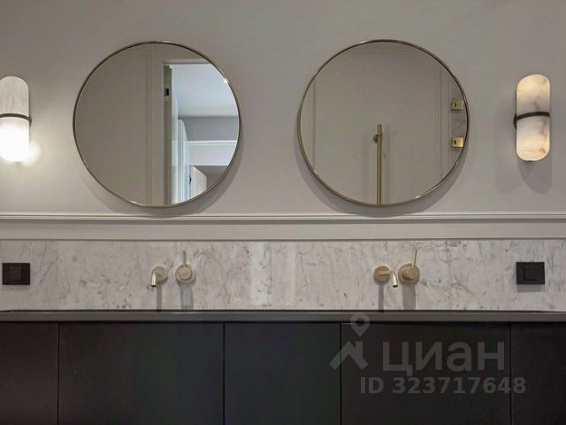 в отделке квартиры использованы анодированная латунь, мрамор и кварцит производства Italy, бронзовые зеркала;