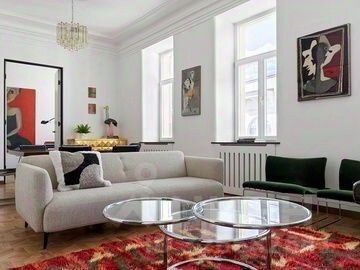 Роскошная квартира в центре Москвы. Вашему вниманию представляется уникальная возможность приобрести квартиру премиум-класса, расположенную в самом сердце столицы, в живописном уголке Пресненского района. Недвижимость расположена в одном из уютных переулков Арбата Скатертный переулок, зажатый между знаменитыми улицами Большая Никитская и Поварская. Дом, достойный легенды Этот элегантный дом, построенный в 1914 году по индивидуальному проекту архитектора В. В. Воейкова, сохранил атмосферу старины и благородства. Кирпичное строение обеспечивает отличную теплоизоляцию и шумоизоляцию; Закрытая парковка во дворе; Детская игровая площадка прямо за домом; Дополнительный черный ход из квартиры добавляет комфорта и приватности; Презентабельная широкая лестница подъезда вызывает восхищение исторической архитектурой; Современный и комфортный доступ благодаря обновленной двери подъезда с домофоном; Удобное помещение для хранения велосипеда, коляски и лифт для вашего комфорта. Интерьер выполнен с применением исключительно экологически чистых и надежных строительных материалов. В квартире в 2001 году проводился капитальный ремонт с заменой всех инженерных систем и коммуникаций. Функциональная планировка: Просторная прихожая с видом на тихий переулок; Элегантный кабинет для деловых встреч и отдыха; Светлая и гостеприимная гостиная, наполненная теплом и светом; Спокойная библиотека для чтения книг и размышлений; Изящная столовая для семейных ужинов и торжественных приемов гостей; Уединённая гостевая комната ( можно переоборудовать под спальню)с красивым выходом на балкон; Пять комфортабельных спален для всей семьи; Хозяйственный постирочный уголок; 3 раздельных санузла и гостевой туалет; Антресоли для аккуратного хранения больших предметов. Помимо эстетики, данная недвижимость впечатляет высоким уровнем технических характеристик: Потолки высотой 3,5 метра создают ощущение простора и свободы; Высококачественное остекление деревянными окнами премиального качества (Финляндия) обеспечивают идеальный микроклимат круглый год; Преимущества владения квартирой в таком месте очевидны: В пешей доступности несколько станций метро (7-10 мин). Инвестиции в будущее. документ основания: договор передачи 1997 год. Без обременений! Присоединитесь к избранному кругу владельцев уникальных объектов Московской недвижимости и позвольте себе насладиться преимуществом комфортного и изысканного образа жизни в самом центре столицы. Приглашаем оценить Ваш новый семейный очаг, способный подарить годы удовольствия, благополучия и процветания. Продается многокомнатная квартира с евроремонтом в переулке Скатертный в Москве.