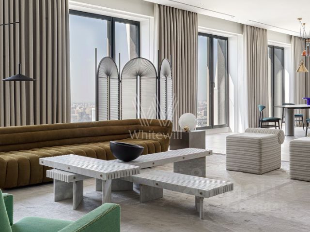 ЛОТ 874 Продажа 6-комнатной квартиры общей площадью 308 кв.м. Метро Динамо, 8 минут пешком. Ленинградский проспект, 37/5. ЖК Прайм Парк (Prime Park). Новый эксклюзивный ремонт по индивидуальному дизайн-проекту. В отделке квартиры использованы только качественные и дорогие эко - материалы. Квартира оборудована техникой премиум класса! Панорамные виды на Москву. Панорамные окна. Высокие потолки 3,2 м.