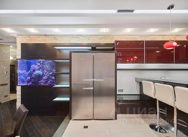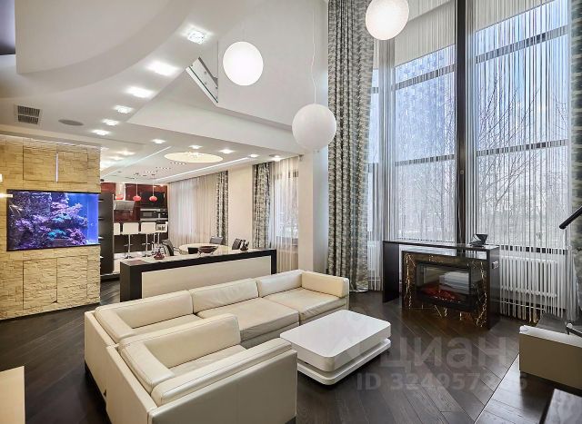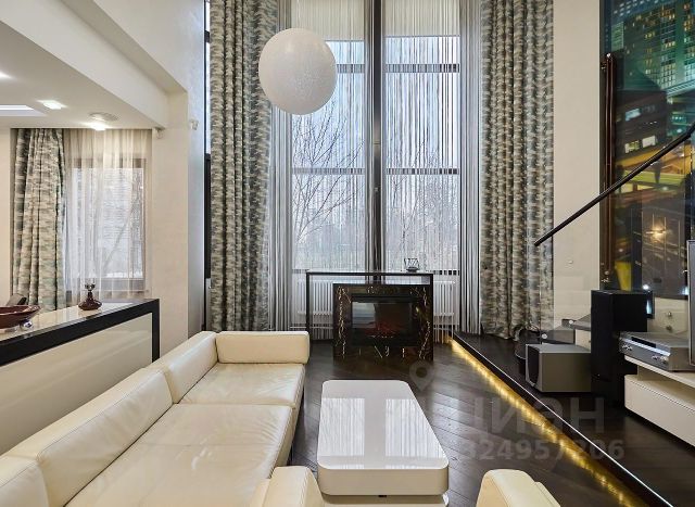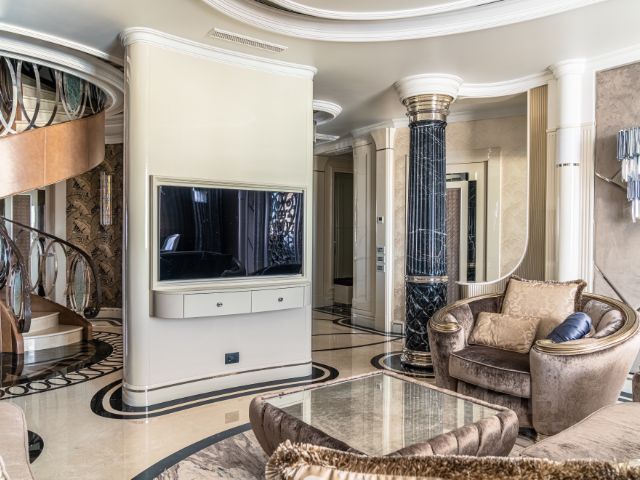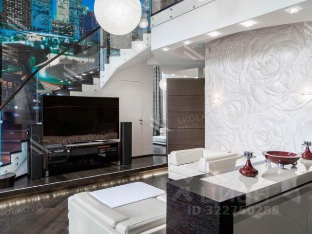 Квартира двух уровневая, с эксклюзивной лестницей, выполненной из камня, с декором из кожи по внешней стороне.