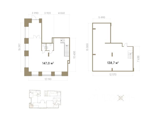 б. Цоколь: высота потолков 3,8 м, подходит для камерных, административных приватных и других помещений