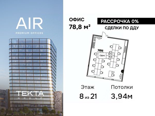Продается помещение свободного назначения 78.80 м² на 8 этаже бизнес-центра AIR.
