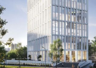 7-этажное офисное здание с двухуровневым подземным паркингом, бассейном и мансардой.