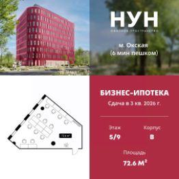 Продается офисное помещение площадью 72.6 м² в бизнес-центре НУН от застройщика Доминанта. ЮВАО, м. ОкскаяСрок реализации проекта - 3 квартал 2026 года. НУН - современный многофункциональный бизнес-центр с выразительным обликом, располагающийся в динамично развив...