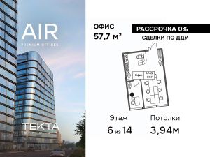 Продается помещение свободного назначения 57.70 м² на 6 этаже бизнес-центра AIR.