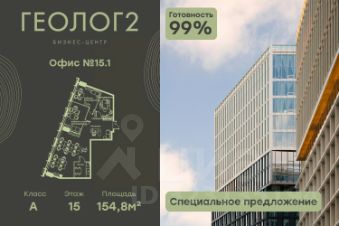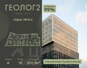 Продается офис в новом, концептуальном Бизнес-центре ГЕОЛОГ2. Бизнес-центр представляет собой отдельное офисное здание класса А: с просторным двухсветным лобби с панорамными окнами, бизнес-гос...