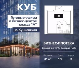 Продается офисное помещение площадью 31 м² в бизнес-центре КУБ класса "А" от застройщика Доминанта.