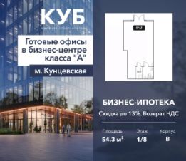 Продается офисное помещение площадью 54.3 м² в бизнес-центре КУБ класса "А" от застройщика Доминанта.