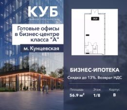 Продается офисное помещение площадью 56.9 м² в бизнес-центре КУБ класса "А" от застройщика Доминанта.