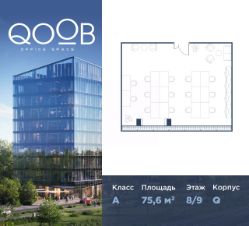 Продается офисное помещение площадью 75,6 м² на 8 этаже, в бизнес-центре QOOB класса "А" от застройщика Dominanta.