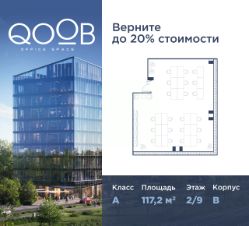 Продается офисное помещение площадью 117,2 м² на 2 этаже, в бизнес-центре QOOB класса "А" от застройщика Dominanta.