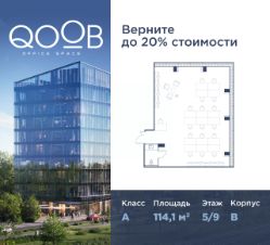Продается офисное помещение площадью 114,1 м² на 5 этаже, в бизнес-центре QOOB класса "А" от застройщика Dominanta.