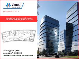 Продается офис с готовым ремонтом площадью 183,1 м² , расположенный на 20 этаже корпуса C бизнес-центра класса "A" Лотос.