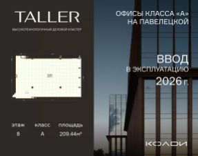 Бизнес-пространство TALLER расположено в центре Павелецкого делового района. Оно станет первым за 14 лет офисным проектом А класса в данной локации, что делает его уникал...