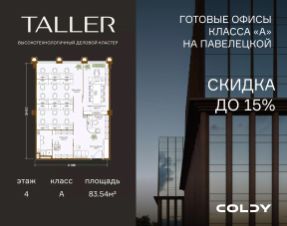 Комфортабельный офис площадью 83.54 м² на 4 этаже инновационного делового центра TALLER. Правильная форма лота с минимальным количеством несущих колонн и свободная планировка помещения позволяют обустроить рабочее пространство любого формата. А панорамное остекле...