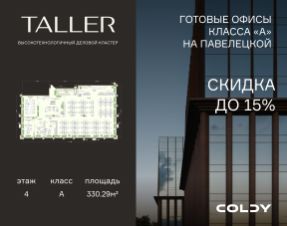 Комфортабельный офис площадью 330.29 м² на 4 этаже инновационного делового центра TALLER. Правильная форма лота с минимальным количеством несущих колонн и свободная планировка помещения позволяют обустроить рабочее пространство любого формата. А панорамное остекл...