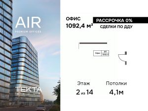 Продается помещение свободного назначения 1092.40 м² на 2 этаже бизнес-центра AIR.