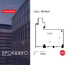 Продаётся офисное помещение площадью 107.8 кв. м. в Бизнес-квартал "Прокшино". Без отделки. Окна с видом на улицу. Высота потолков 3.6 м. Выделенная электрическая мощность — 10 кВт. Отдельный вход с улицы. Стоимость помещения — 22 263 934 руб. Способы оплаты и б...