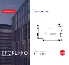 Продаётся офисное помещение площадью 95.6 кв. м. в Бизнес-квартал "Прокшино". Без отделки. Окна с видом на улицу. Высота потолков 3.6 м. Выделенная электрическая мощность — 8 кВт. Отдельный вход с улицы. Стоимость помещения — 22 426 804 руб. Способы оплаты и бол...