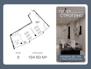 В продаже от застройщика комфортабельный Smart-офис площадью 141.8 м² на 3 этаже в премиальном бизнес-центре Сити Строгино. Срок сдачи - 2028 год.