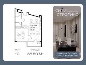 В продаже от застройщика комфортабельный Home-офис площадью 55.5 м² на 10 этаже в премиальном бизнес-центре Сити Строгино. Срок сдачи - 2028 год.